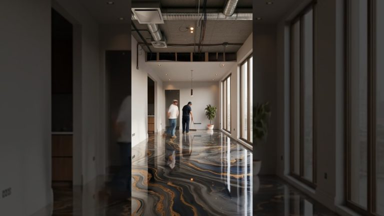 Watch a complete interior transformation from raw construction to a fully finished modern dining room with a luxury metallic epoxy floor.